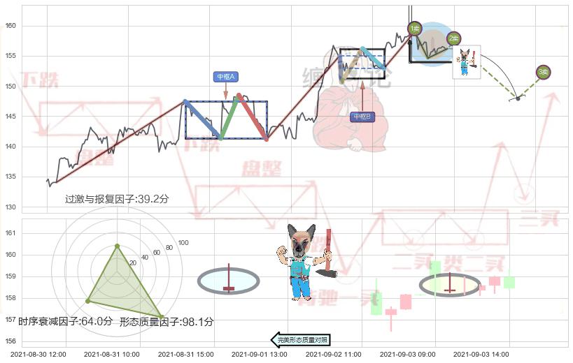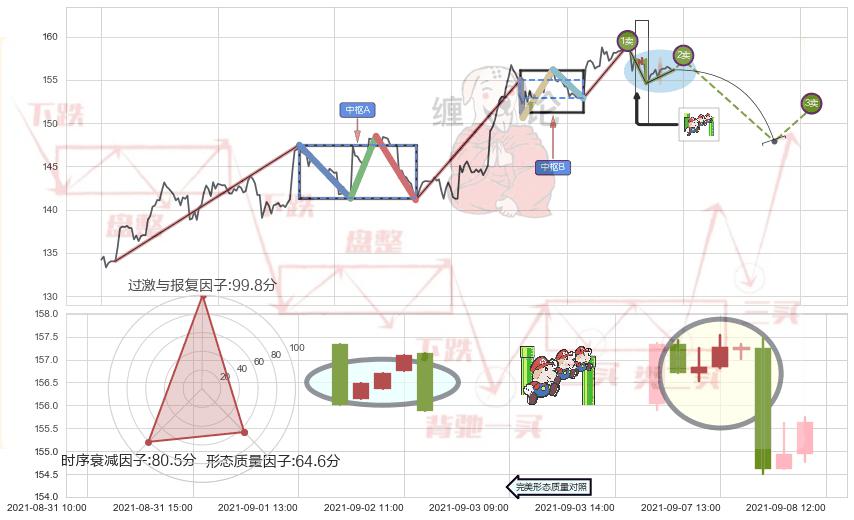 ➢ 【仅预测突破】最后价格:156.16与预测突破价格:157.34→【空间临近】后续最小【整理】第一目标价格→(09-15:15: 164.45 )