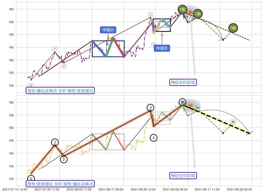 ➣ 缠论买卖点:猜想2卖持续蓄力下跌至3卖 → 下跌 → 风险信号 → 小趋势跟踪