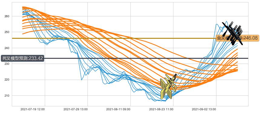 ➣ 45小时均线于(09-09 13:00: 246.02)形成【死叉】基于【死叉历史模型】预测死叉后最低波谷价格: 233.12, 死叉后最低价格246.03,已经下跌超出预测最低波谷价格, 预期反弹