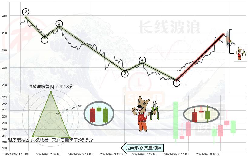 ➢ 🕰 价格走势在2021-09-08 00:00:00至2021-09-09 00:00:00期间形成底部尽头线(上山虎),残存影响值:5.67