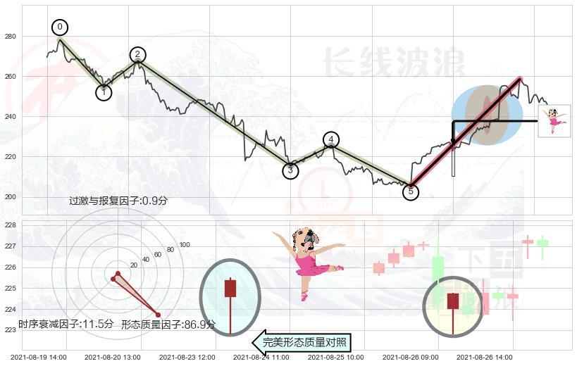 ➢ 🕰 价格走势在2021-08-27 10:00:00至2021-08-27 14:00:00期间形成高档五阴线,残存影响值:-0.42