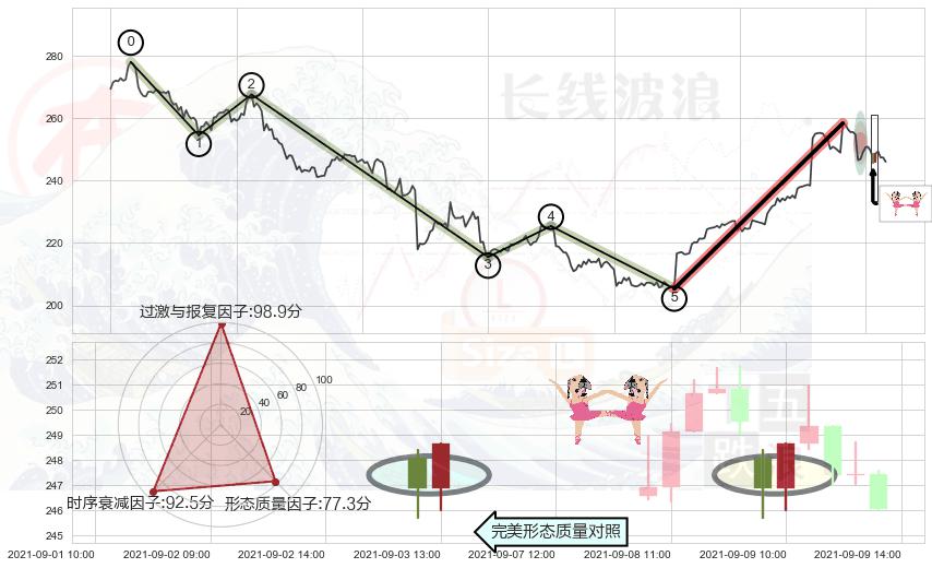 ➢ 🕰 价格走势在2021-09-09 09:00:00至2021-09-09 10:00:00期间形成双针探底,残存影响值:6.57