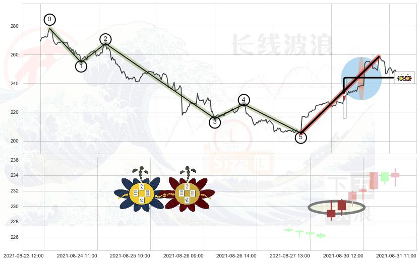 ➢ 最后的下跌趋势2021-04-26 14:00至2021-08-23 09:00:存在突破迹象,后续小反弹或者反转上涨