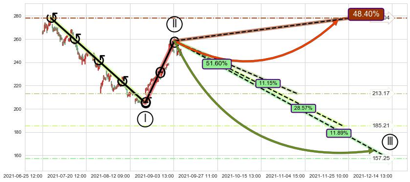 ♘ 支撑价格位215.92,可信任强度91.00%,距离最后交易2021-09-09 14:00形成的收盘价格246.03相差 -12.24%