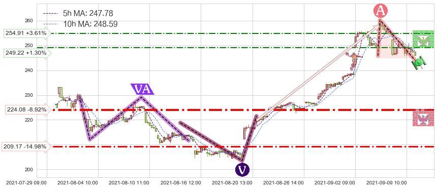 ♘ 阻力价格位249.22,可信任强度50.05%,距离最后交易2021-09-09 14:00形成的收盘价格246.03相差 +1.30%