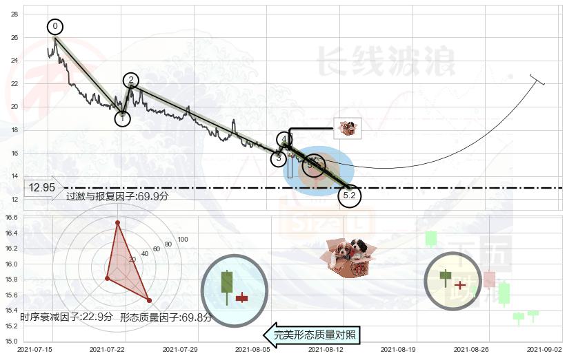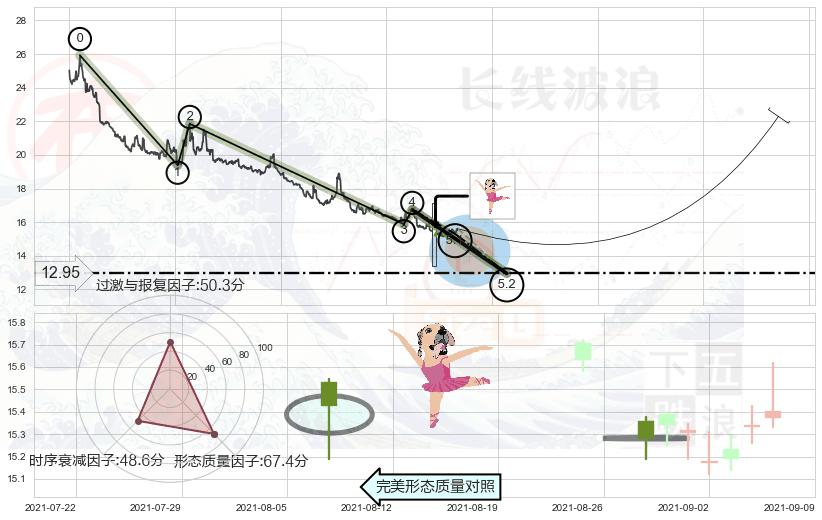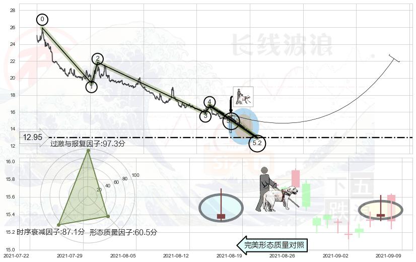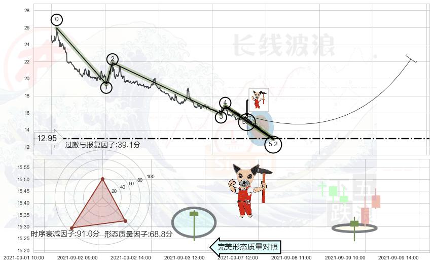 从2021-05-12 15:00至2021-09-09 13:00,共包含507个小时,阶段股价下跌-32.61%,阶段股价变动位移路程比: 1 : 7,下跌趋势角度: 48.2