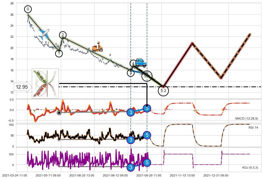 ➢ 5.2: 预测第5浪最终位置(10-01:11, 12.95)