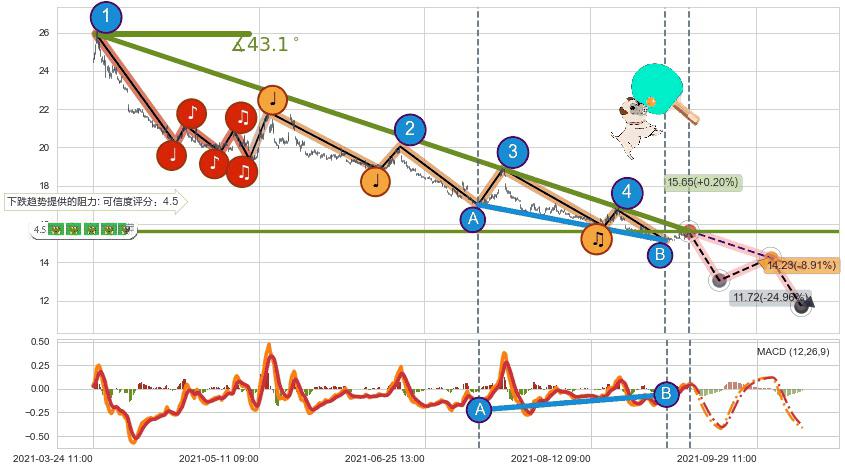 ➣ 预测:2021-10-04 11:00,【试探阻力】稳定目前下跌趋势的前提下,预测价格:14.23