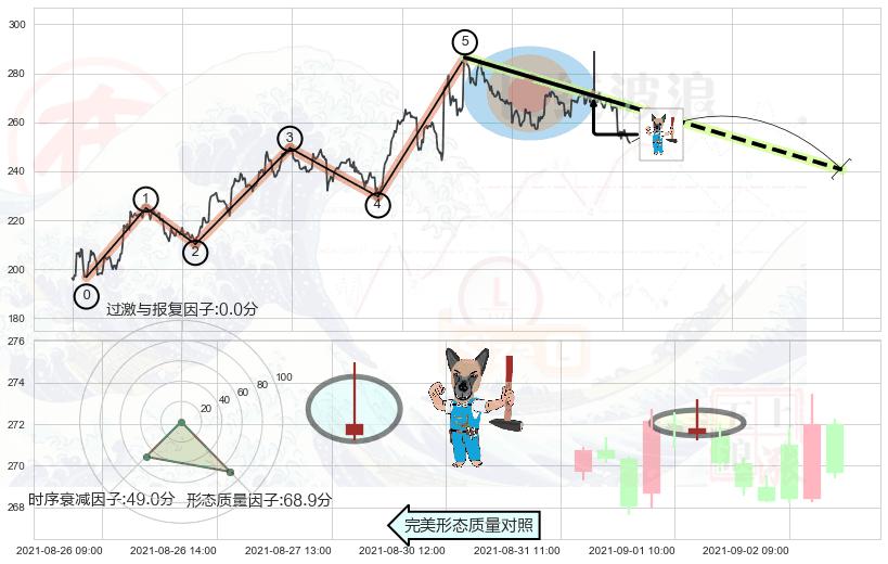 ➢ 看跌(高位倒锤头)流星线 🔜 波浪理论上涨浪:浪5回调拐点 综合量化分数:46.59 【中性】