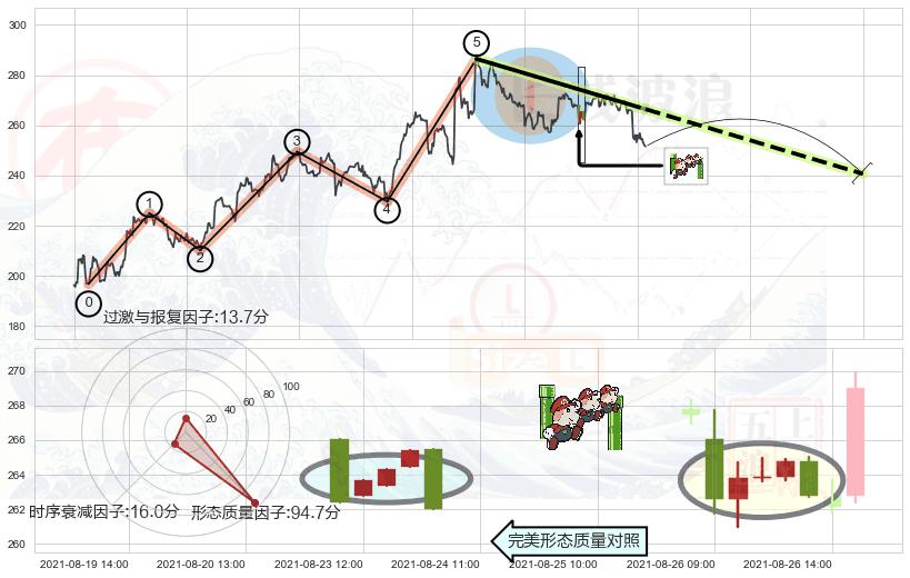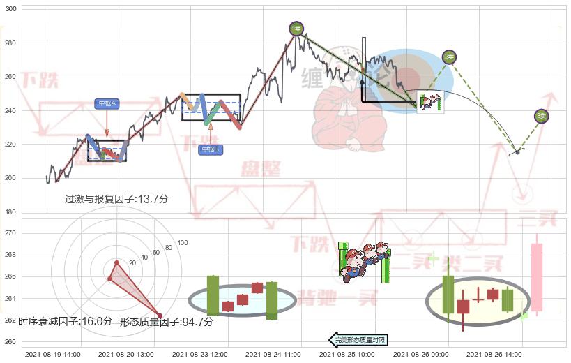 ➢ 🕰 价格走势在2021-08-26 09:00:00至2021-08-26 13:00:00期间形成下降三部曲(降势三鹤),残存影响值:-2.47