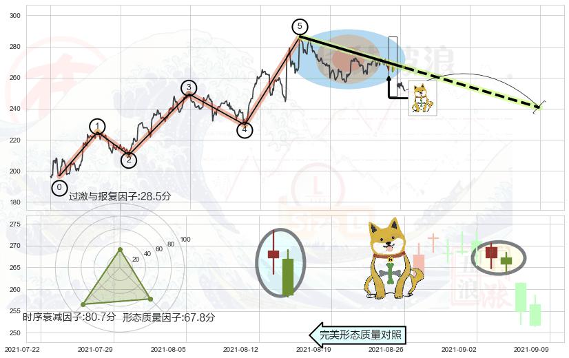 ➢ 下降三部曲(降势三鹤) 🔜 波浪理论上涨浪:浪5回调拐点 综合量化分数:45.16 【偏空】