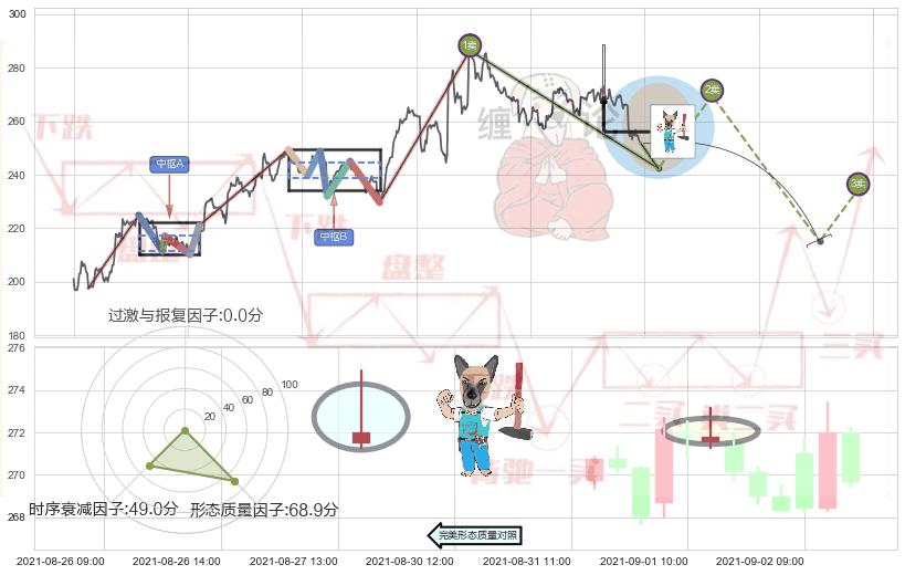 ➢ 下降三部曲(降势三鹤) 🔜 缠论买卖点2卖回调下跌至3卖 综合量化分数:47.48 【中性】