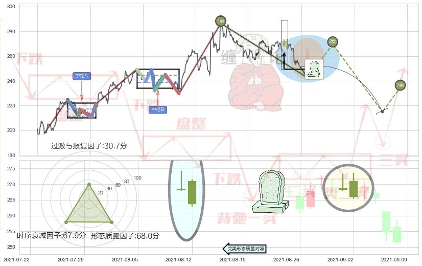 ➢ 🕰 价格走势在2021-09-03 00:00:00至2021-09-07 00:00:00期间形成下跌孤独十字星,残存影响值:-4.74