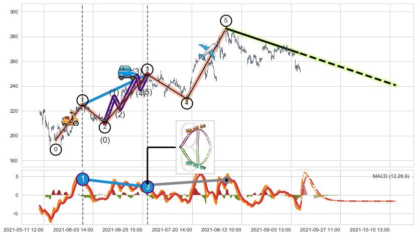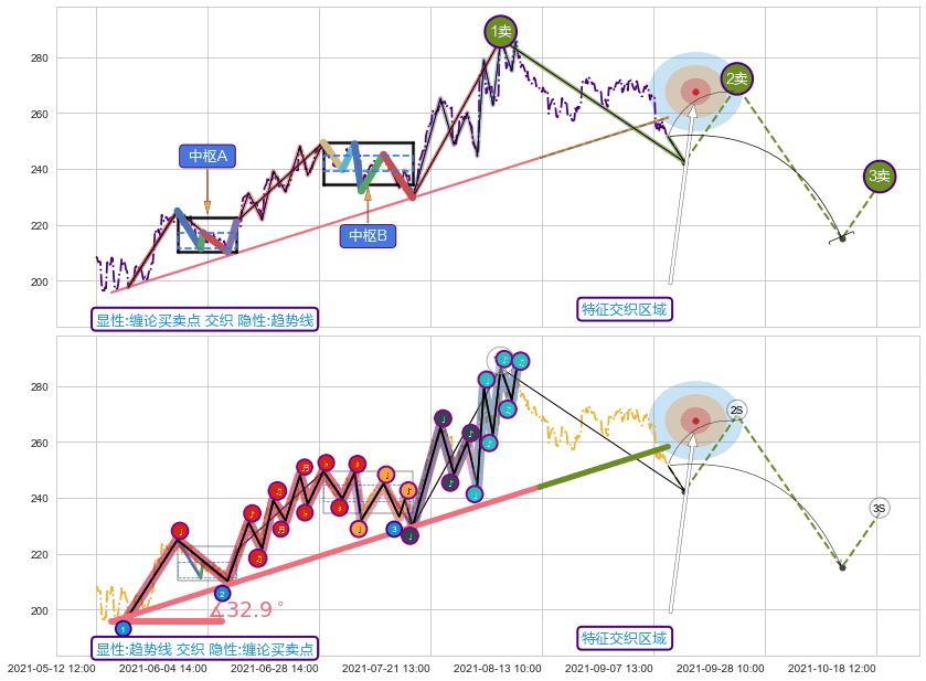 ➣ 缠论买卖点:猜想2卖持续蓄力下跌至3卖 → 下跌 → 风险信号 → 小趋势跟踪