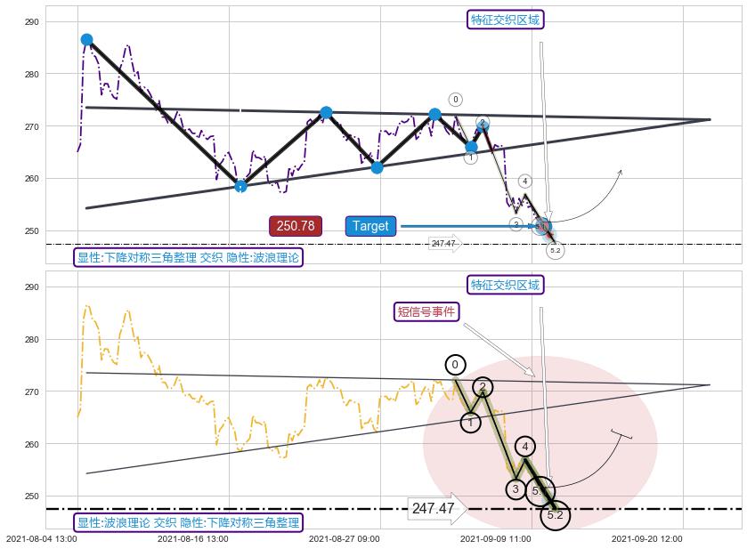 ➣ 5.1: 预测当前第5浪位置(09-09:14, 251.54),仍然有下跌空间