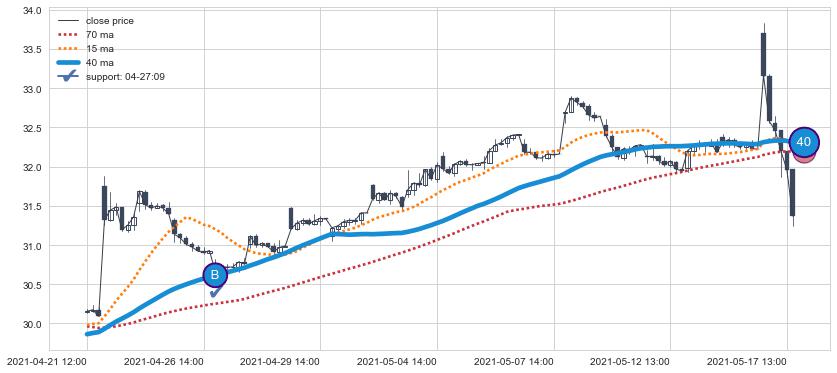 👍 尚未达到多条均线预测的最高波峰价格的平均值, 预期继续上涨