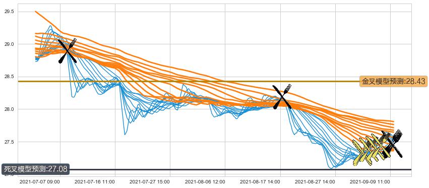 ➣ 30小时均线于(09-09 11:00: 27.49)形成【死叉】基于【死叉历史模型】预测死叉后最低波谷价格: 27.05, 死叉后最低价格27.42,尚未达到预测最低波谷价格, 预期继续下跌