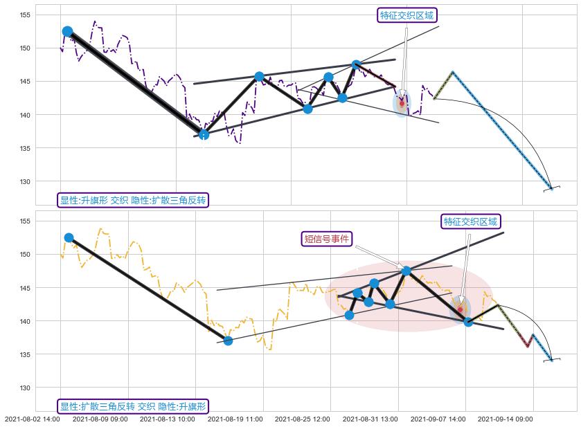 ➢ 扩散三角反转属【短级别信号事件】升旗形属【长级别信号事件】长短周期组合信号事件, 短长事件长度比31.47%
