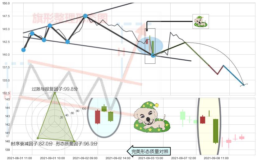 ➢ 🕰 价格走势在2021-09-01 00:00:00至2021-09-01 00:00:00期间形成看跌(高位倒锤头)流星线,残存影响值:-6.62
