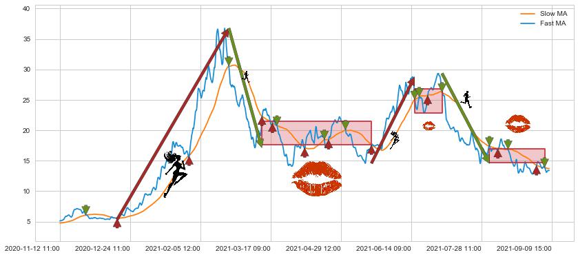 06-15 13:00至07-01 14:00 慢线与快线多次接触,存在上下穿越,有缠绕