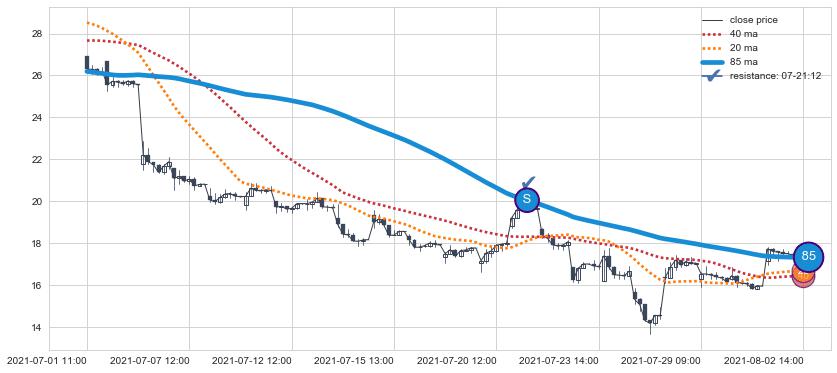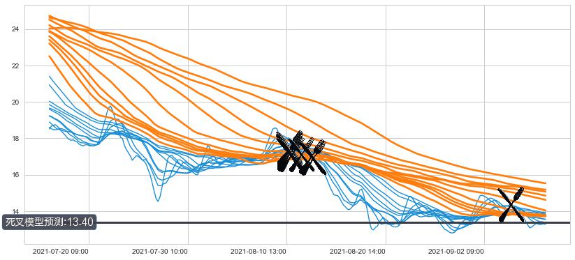 ➣ 45小时均线于(08-10 14:00: 17.29)形成【死叉】基于【死叉历史模型】预测死叉后最低波谷价格: 14.66, 死叉后最低价格12.52,已经下跌超出预测最低波谷价格, 预期反弹