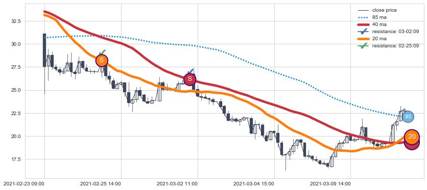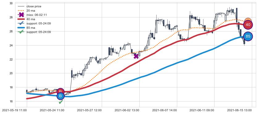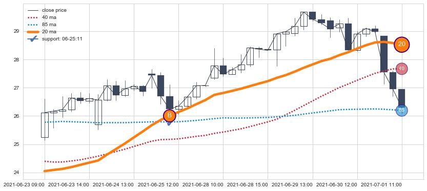 ➢ 最优均线组合共正确确认支撑阻力信号7处,正确确认率 70.00%