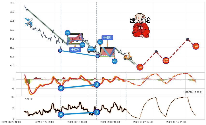 ➢ 缠论中枢点:猜想破位中枢B后持续下拉 → 下跌 → 破位中枢B支撑 → 持续趋势跟踪