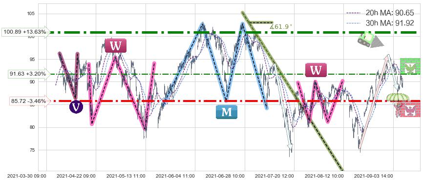 ♘ 阻力价格位91.63,可信任强度53.24%,距离最后交易2021-09-09 14:00形成的收盘价格88.79相差 +3.20%