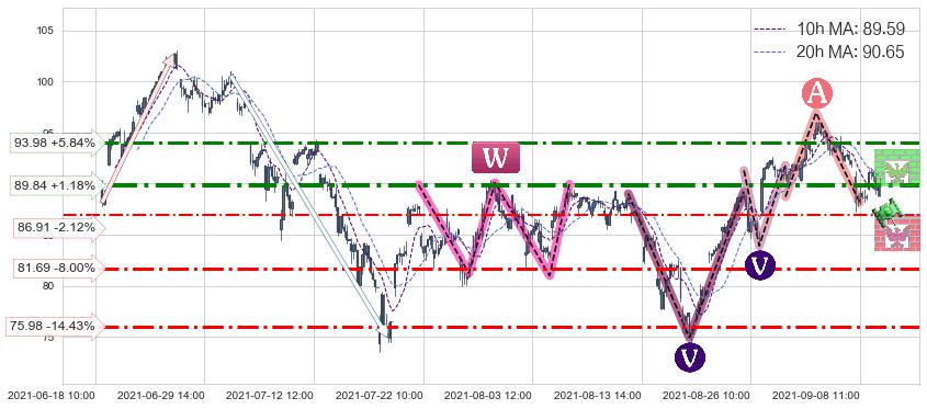 ♘ 阻力价格位89.84,可信任强度83.53%,距离最后交易2021-09-09 14:00形成的收盘价格88.79相差 +1.18%
