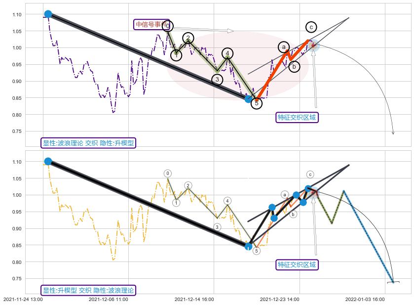➢ 循环浪继续向下【最低】位置(01-11:11, 0.7496),匹配聚类样本比例22.21%, 可能性概率10.62%
