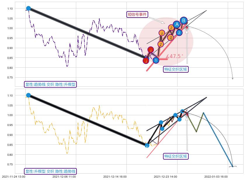 从2021-12-20 11:00至2021-12-27 16:00,共包含36个小时,阶段股价上涨18.95%,阶段股价变动位移路程比: 1 : 2