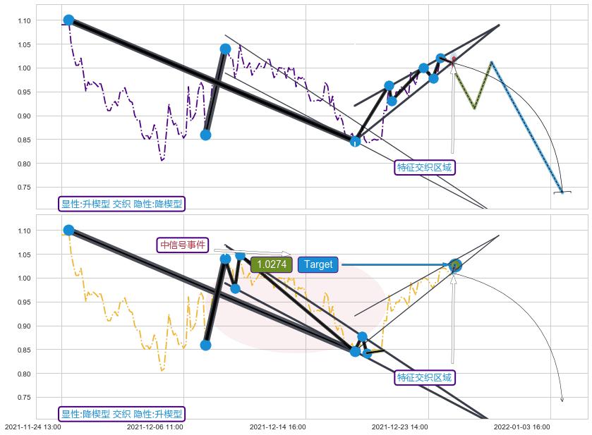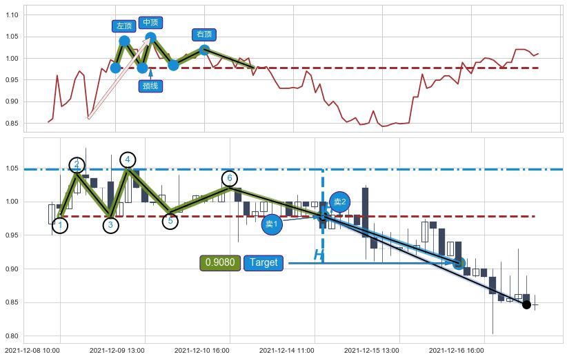 ➣ 【卖2】: 保守型 卖点→(12-14:14: 0.9770 )形成三重顶突破后的【回抽确认】
