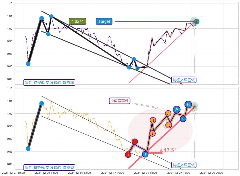 🍖 长线趋势跟踪组合短线均值回复[强支撑信号]2021-12-17 13:00-2021-12-27 15:00上升趋势依然成立(上涨趋势跟踪依然可行),短线价格略微下行回调(均值回复猜想),即将接近趋势提供的未破位的支撑价格:1.0265。