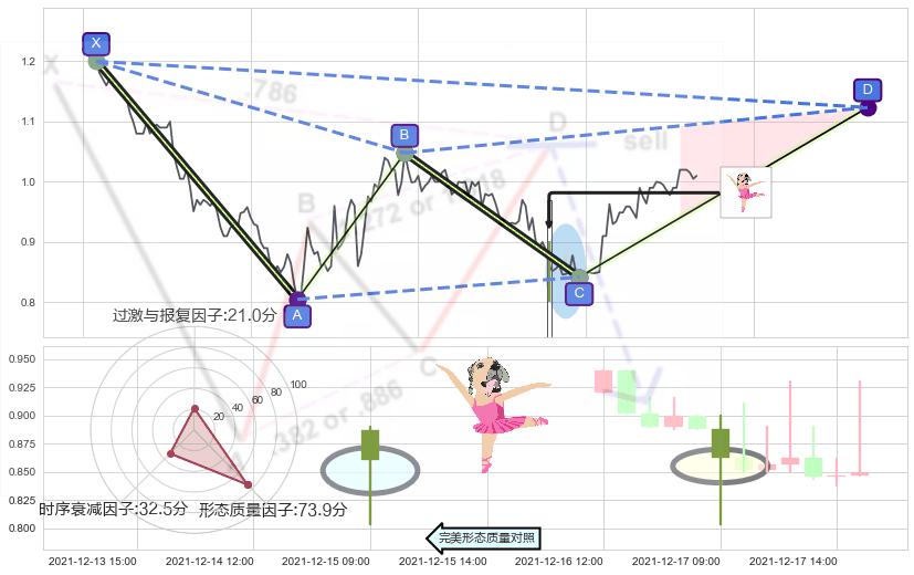 ➣ BC回撤位置在AB的84.8%,符合形态要求