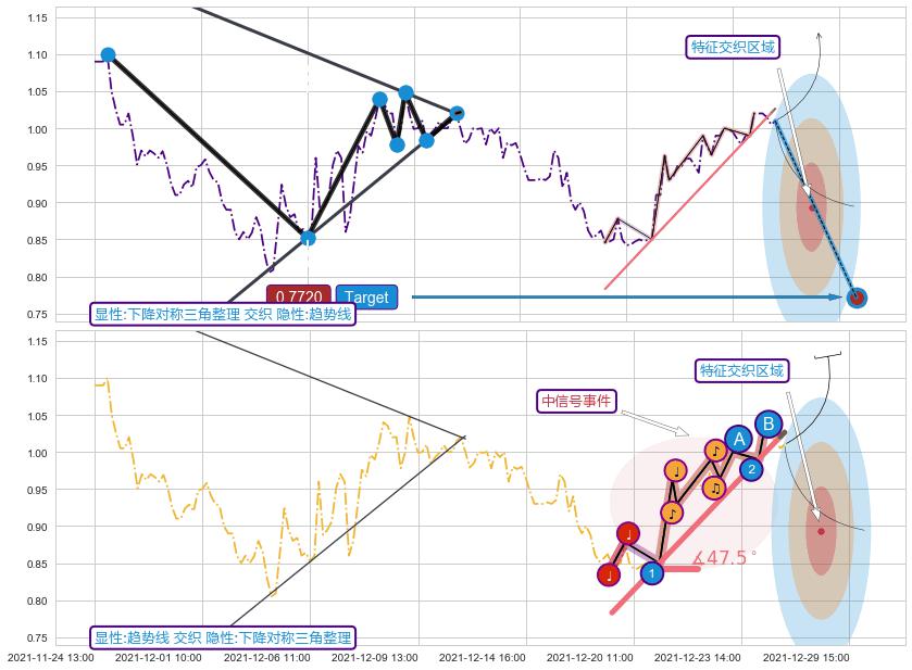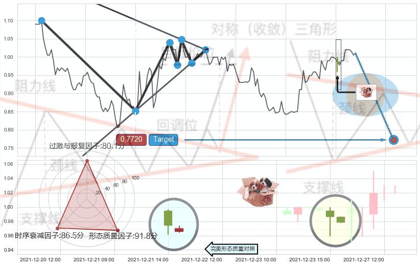 ➣ 【已达成】最小【反转】第一目标价格→(12-16:13: 0.9080 ), 后续继续【反转】下跌动力微弱,下跌较小