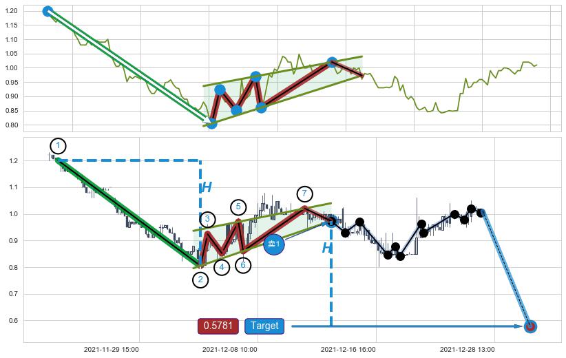 ➢ 最小中继整理涨幅→𝐇: 0.180000 (𝐇楔型旗杆的长度:楔型起点→顶点)