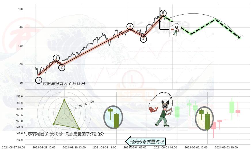 ➢ 三空阳线 🔜 波浪理论上涨浪:浪5回调拐点 综合量化分数:49.88 【中性】