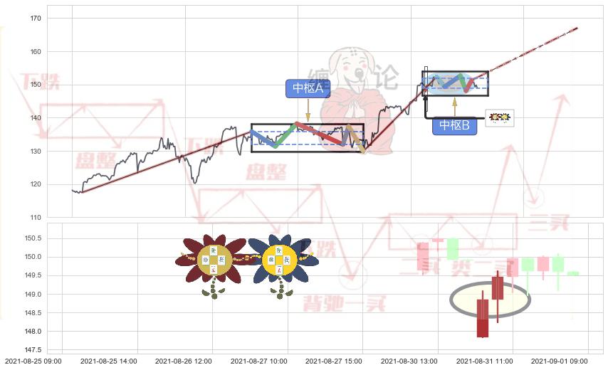 ➣ 【中枢B】:09-01:12-09-09:09,中枢由5笔构成,共32交易小时, ZG=151.30, ZD=149.33