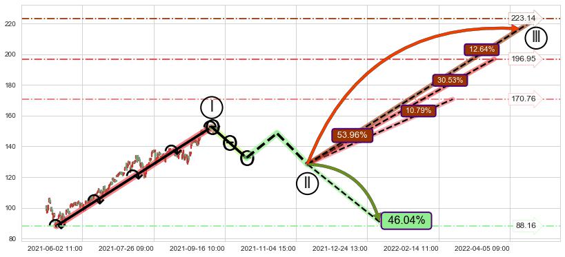 ➢ 循环浪继续向上【最高】位置(04-22:10, 223.14),匹配聚类样本比例23.43%, 可能性概率12.64%