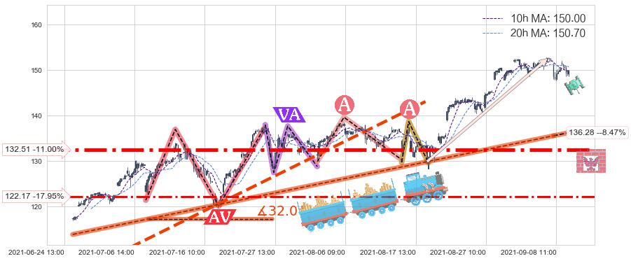 从2021-08-18 14:00至2021-09-09 14:00,共包含102个小时,阶段股价上涨14.00%,阶段股价变动位移路程比: 1 : 3