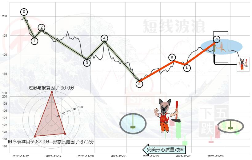从2021-12-08 12:00至2021-12-10 15:00,共包含20个小时,阶段股价上涨0.85%,阶段股价变动位移路程比: 1 : 6