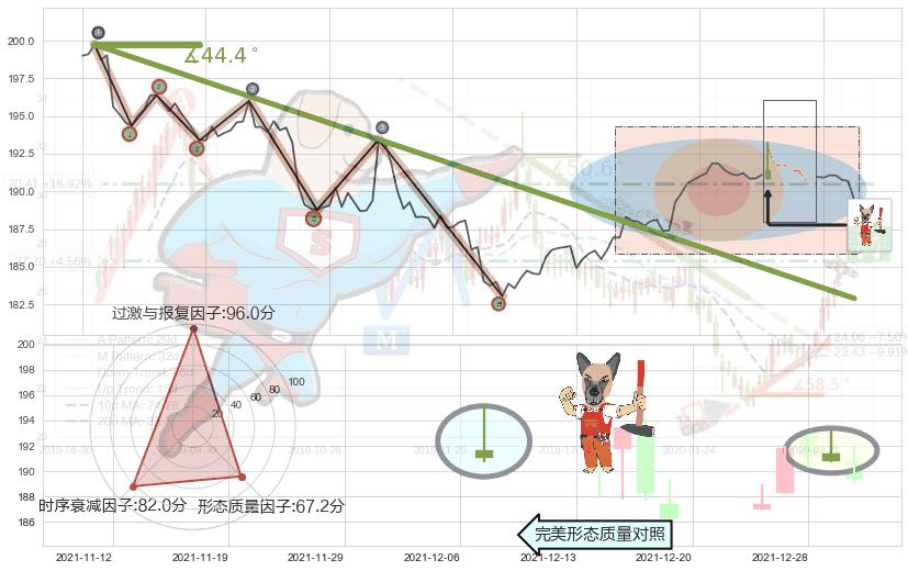 ➢ 2021-12-07 13:00-2021-12-20 13:00下跌趋势存在反转上涨[机会],其原下跌趋势的阻力位(182.89)已被突破[强支撑信号],原下跌趋势角度: 44.4˚