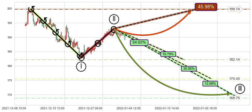 ♘ 阻力价格位194.01,可信任强度98.70%,距离最后交易2021-12-30 15:00形成的收盘价格189.41相差 +2.43%