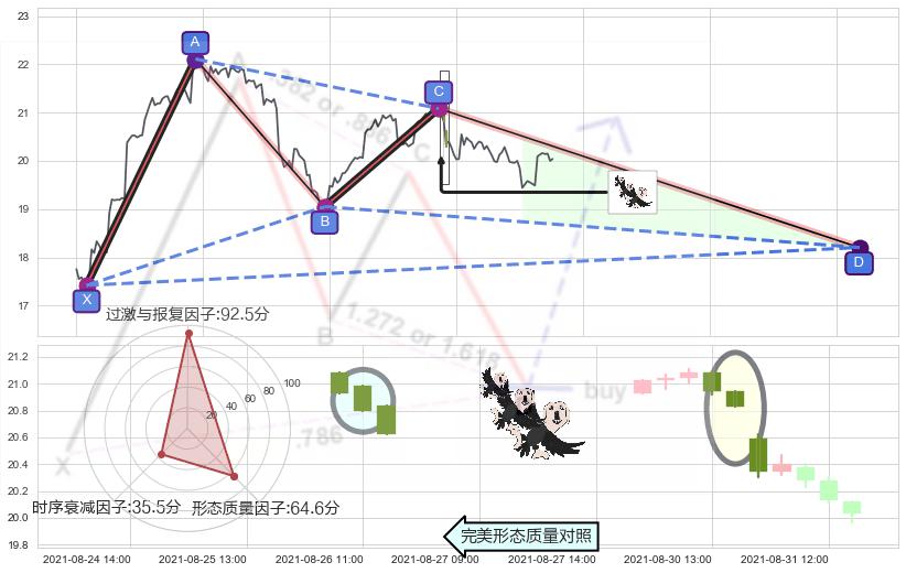 ➢ 🕰 价格走势在2021-08-24 00:00:00至2021-08-25 00:00:00期间形成顶部尽头线(下山虎),残存影响值:-3.54