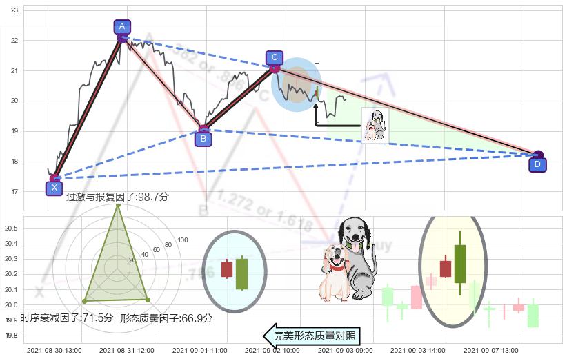 ➢ 🕰 价格走势在2021-09-03 14:00:00至2021-09-07 09:00:00期间形成阴包阳形态,残存影响值:-4.79