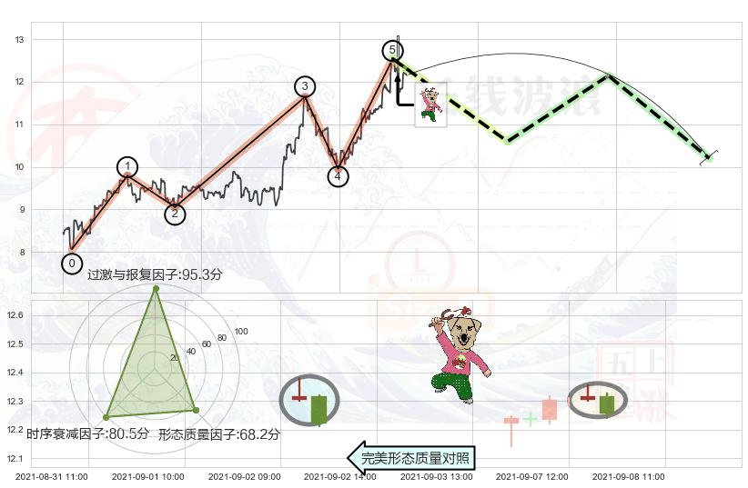 从2021-05-17 12:00至2021-09-09 13:00,共包含484个小时,阶段股价上涨44.10%,阶段股价变动位移路程比: 1 : 6,上涨趋势角度: 20.9