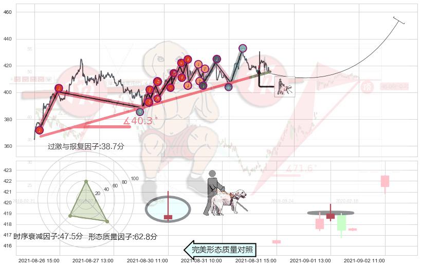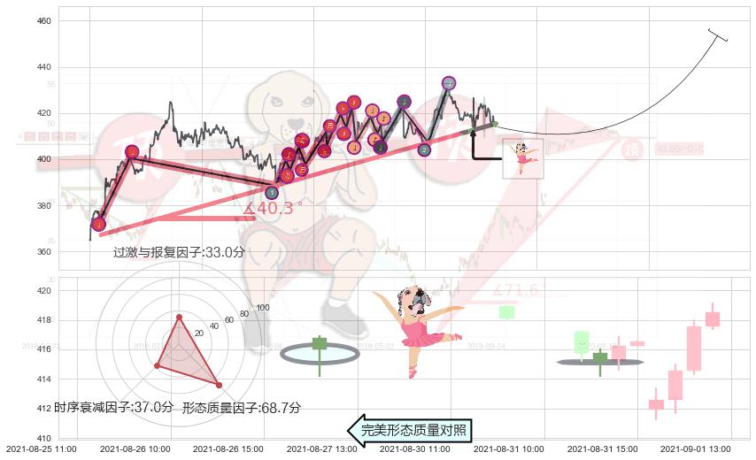 ♘ 阻力价格位421.23,可信任强度94.14%,距离最后交易2021-09-09 14:00形成的收盘价格414.17相差 +1.70%