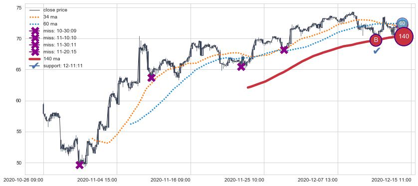 ➢ 最优均线组合共正确确认支撑阻力信号8处,正确确认率 53.33%