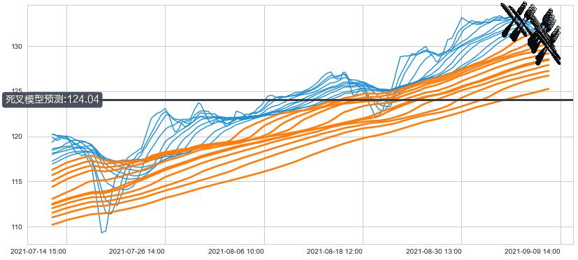 ➣ 60小时均线于(09-09 09:00: 131.76)形成【死叉】基于【死叉历史模型】预测死叉后最低波谷价格: 123.87, 死叉后最低价格129.73,尚未达到预测最低波谷价格, 预期继续下跌