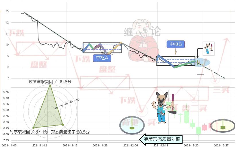 从2021-11-29 11:00至2021-12-13 11:00,共包含71个小时,阶段股价下跌-7.78%,阶段股价变动位移路程比: 1 : 10